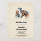 Eine Geburtstagsfeier mit einem schönen Aquarell-zeichn. Mit einem Paar Pferde, braun und weiß. Kopf und Hals sichtbar mit tropfender Farbe entlang der Nackenbasis. Südwestvibe.