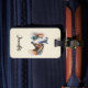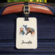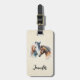 Ein Gepäckanhänger mit einer schönen Wasserfarbe gezeichnet. Mit einem Paar Pferde, braun und weiß. Kopf und Hals sichtbar mit tropfender Farbe entlang der Nackenbasis. Südwestvibe.