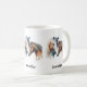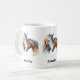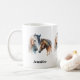 Eine Tasse mit einer wunderschönen Aquarell zeichnend. Mit einem Paar Pferde, braun und weiß. Kopf und Hals sichtbar mit tropfender Farbe entlang der Nackenbasis. Südwestvibe.