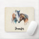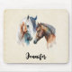 Ein Mauspad mit einer schönen Aquarellfarbe zeichnend. Mit einem Paar Pferde, braun und weiß. Kopf und Hals sichtbar mit tropfender Farbe entlang der Nackenbasis. Südwestvibe.