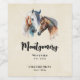 Wein macht Flaschenetiketten mit einem schönen Aquarell zeichnend. Mit einem Paar Pferde, braun und weiß. Kopf und Hals sichtbar mit tropfender Farbe entlang der Nackenbasis. Südwestvibe.