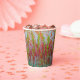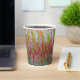 Schöne abstrakte Kunstwerke, die durch eine Panzerung der Gelli-Platte entstanden sind und die leuchtenden Farben Rot, Grün, Orange und Türkis hervorheben.