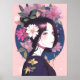 Poster in einem animierten Porträt eines schönen Mädchens, gekrönt mit weichen rosa und weißen Blume