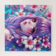 Hübsches Anime-Mädchen mit lila Haaren und weißen Blume hyper realistische ai Art.