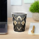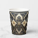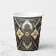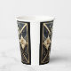 Elegante Vintage Art Deco Papier Tassen in cremigem Elfenbein, schwarz, gold. Schöne Blütenpracht mit goldenen Mitte, geometrischen Linien und Winkeln und eleganten goldenen und schwarzen Metallperlen auf schwarz. #generativecontent