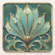 Sehr hübsches, stilvolles, Vintages Art-Déco-Design in Türkis, Grün und Gold. Hübsche impressionistische Blume, Lilie mit eleganter Goldgrenze. #generativecontent