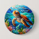 Eine süße kleine Meeresschildkröte schwimmt durch das blaue Meer.