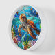 Eine süße kleine Meeresschildkröte schwimmt durch das blaue Meer.