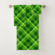 Ein Set Badetücher mit einem schönen, lebendigen, baumgrünen karierten Muster.