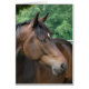 Foto des Kopfes und der Brust eines Buschpferdes, das nach hinten schaut.