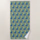 Genießen Sie die Sonne und den Strand mit diesem großen Badetuch, das das Foto eines wunderschönen, blauen Pfauens mit seinem farbenfrohen Federkiefer zeigt und in einem sich wiederholenden Muster bedruckt ist.