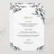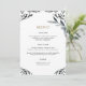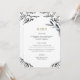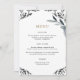 Einfache und hübsche blaugraue Blätter Rand Hochzeitsmenü mit klassischer Typografie. Bitte schauen Sie sich diese botanische Hochzeitskollektion an, um Einladungen und Accessoires zu koordinieren.