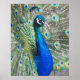 Halbglänzender Plakatdruck mit dem Foto eines blauen Pfaucks mit bunten Federn. Passen Sie Ihre Poster-Größe nach Ihren Wünschen an.