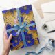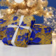 Schönes Blumenmuster für Geschenkpapier in International Klein Blue und Gold repetitive Bilder.