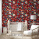 Schöne, fließende, helle und kühn rote und blaue Blume in einem schicken und raffinierten Design. Die perfekte Verkleidung, um Ihre Wände in jedem Raum Ihrer Wahl zu wärmen.