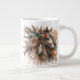 Ein Boho-Pferd mit einer Federkopfbedeckung, mit pastellfarbenen, gedämpften Farben und Federn, die durch seine Mähne geflochten sind, inspiriert vom indianischen Stil.