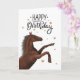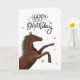 Schönes, braunes Pferd, das die Geburtskarte trägt Karte