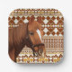 Schönes, braunes Pferd über das geometrische Muste Pappteller