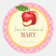 Rundetikett perfekt für Konservierung und Konservierung von Konserven. Schöne Illustriert mit einem Apfel und einem Gingham-Muster. Sie können dieses Label nach Ihren Wünschen personalisieren. Mehr Farben und Variationen dieses Apfelthemas im Shop! Original Kunst durch © 2011 Monica B. Alle Rechte vorbehalten.