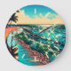 Schönes Comic Pop Art Style Beach Szene Große Wanduhr