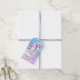 Geschenke Tags mit einem Bild eines Einhorns mit großen blauen Augen, rosa Flügel und einem Regenbogenmane und Schwanz. Kawaii niedlich.