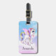 Ein Gepäckanhänger mit dem Bild eines Einhorns mit großen blauen Augen, rosa Flügeln und einer Regenbogenmane und einem Schwanz. Kawaii niedlich.