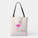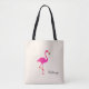 Wunderschöner Magenta Flamingo und Kalligraphie auf der Elfenbeintasche.