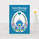 Wunderschön inspiriert von polnischem Folklore Ostereier namens Pisanka (Pysanka) mit farbenfroher Folklore-Komposition und dunkelblauem Hintergrund. Benutzerdefinierter Text im Inneren, bei Bedarf durch einen eigenen ersetzen. Maßgeschneiderte Vorderseite.