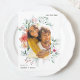 Diese hübsche Hochzeit bewahrt die Ankündigung des Datums mit farbenfrohen Aquarellblüten und zartem weichen Pfirsich-, Elfenbein- und rosa Blume, mit subtilen grünen Blätter auf weißem Hintergrund, die eine sanfte Schönheit zu diesem romantischen Design hinzufügen. Ein schönes Foto aus Bogenform befindet sich in der Mitte der Karte. Laden Sie diesen Laden für die Koordinierung der Einladungen für Hochzeiten ein.