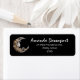 Adressetiketten mit einer schönen Abbildung. Ein weibliches Gesicht im Mond, umgeben von Blume.