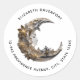Adressaufkleber mit einer schönen Abbildung. Ein weibliches Gesicht im Mond, umgeben von Blume.