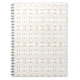 Elegantes Notebook mit schönem goldfarbenem geometrischem Muster auf weißem Hintergrund. Diese goldenen Polka-Punkte bilden ein vierartiges wirbelndes Muster.