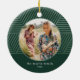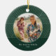 Dieses wunderschöne Kiefergrün-Urlaubsornament besticht durch ein zentrisches, gerahmtes Foto, und den Namen und das Jahr in weißer Typografie. Dieses trendige Ornament besticht durch ein geometrisch gestreiftes, metallisch grün gestreiftes geometrisches Muster und einen dunkelgrünen Hintergrund. Bitte schauen Sie sich diese festliche Saisonkollektion an, um weitere Farboptionen zu erhalten und Weihnachtskarten zu koordinieren.