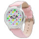 Kinderuhr aus Edelstahl mit rosa Lederarmband
