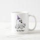 Das schöne Halloween-Gespenst mit seinem lila Party, das für das Halloween-Kostüm-Party bereit ist.