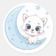 Adorable Kitty Over the Moon Classic Round Aufkleber