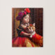 Schönes kleines Mädchen mit einem Niedlichen katzendigitalen Bild 3D-Stil für Kinderzimmer