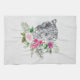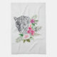 Ein Küchentuch mit einer schönen Abbildung mit einem grauen, schwarz-weißen Leopardenportrait. Dieses hübsche Tier ist von einer tropischen Blume umgeben. Elegant, exotisch und schön.