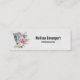 Mini Visitenkarten mit einer schönen Abbildung mit einem grauen, schwarz-weißen Leopardenportrait. Dieses hübsche Tier ist von einer tropischen Blume umgeben. Elegant, exotisch und schön.