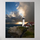 Poster mit dem Foto eines schönen Leuchtturms bei Sonnenuntergang.