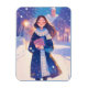 Schönes Mädchen läuft über die Winterstraße Magnet