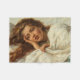 Dieses Design zeigt ein Gemälde des italienischen Künstlers Antonio Ermolao Paoletti (1834-1912), der in der Stadt Venedig geboren war und arbeitete. Es zeigt eine schöne junge Frau mit langfließendem, kastanienrotem Haar, das in ihrem Bett liegt. Die Cover sind über ihren Körper gezogen und sie lehnt sich mit ihrem Kopf auf einer ihrer Hände. Sie hat volle rote Lippen. Sie schaut weg vom Betrachter, verirrt in Gedanken. Es ist ein elegantes Porträt weiblicher Schönheit.