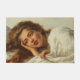 Dieses Design zeigt ein Gemälde des italienischen Künstlers Antonio Ermolao Paoletti (1834-1912), der in der Stadt Venedig geboren war und arbeitete. Es zeigt eine schöne junge Frau mit langfließendem, kastanienrotem Haar, das in ihrem Bett liegt. Die Cover sind über ihren Körper gezogen und sie lehnt sich mit ihrem Kopf auf einer ihrer Hände. Sie hat volle rote Lippen. Sie schaut weg vom Betrachter, verirrt in Gedanken. Es ist ein elegantes Porträt weiblicher Schönheit.