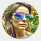 Schönes Mädchen mit Sonnenbrille Reflektion Blume Runder Aufkleber