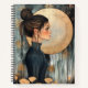 Ein schönes Mädchen mit dem Mond an ihrer Seite. Warme Goldtöne und Blau bringen die Wärme ihres atemberaubenden Glühens hervor. Wenn du will, Ideen, Zeitschriften oder Skizzen zu schreiben, macht dieses Notizbuch jede Seite ein wenig magischer. Endlos vielseitig und bereit für alles, was Sie schaffen.