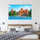 Dieses Produkt bietet einen herrlichen Blick auf eine gotische mittelalterliche Burg in einem schönen blauen See - mit grünen Bäumen, Rasen und Gehweg ist es schwer zu glauben, dass diese Struktur im Wasser stehend ist.