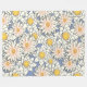 Niedliche Grafik im modernen Retro-Look, Blumenmuster in Blau, Weiß und Gelb für die Wohngestaltung.