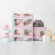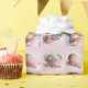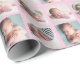 Elegantes Babyverpackungspapier mit personalisiertem Fotomodell für ein Foto. Schöne 4 Bild-Vorlage Geschenkverpackung mit hübsch rosa Linien, die die Fotos Ihres Säuglings trennt.
