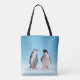 Schönes Pinguin-Paar auf hellblauem Hintergrund.