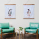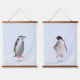Schönes Penguin Couple auf Light Periwinkle Blue Wandteppich Mit Holzrahmen